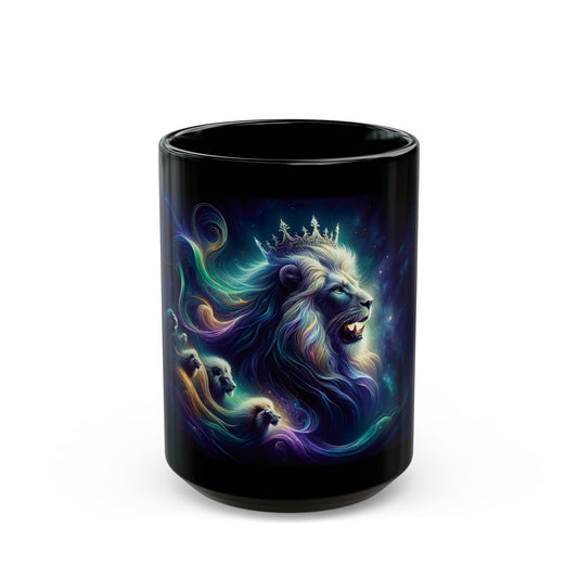 Majestic Lion Galaxy Mug - 11oz & 15oz - Perfect for Animal Lovers & Cosmic Dreamers | Cosmic Sovereignty: The Galactic Lion King | Black