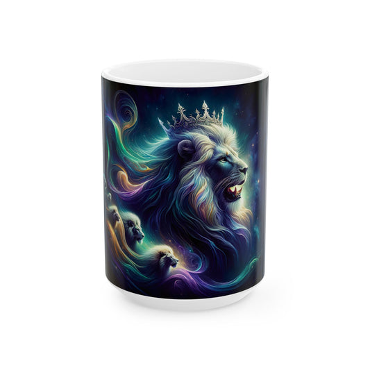 Majestic Lion Galaxy Mug - 11oz & 15oz Ceramic Coffee Cup for Animal Lovers | Cosmic Sovereignty: The Galactic Lion King