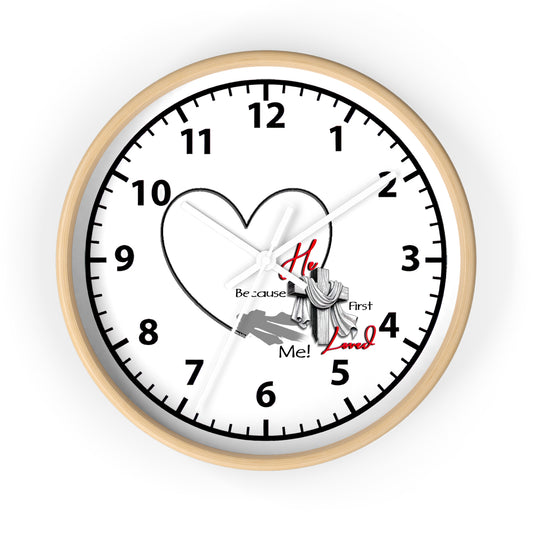 Inspirational Heart Wall Clock - 'He Loved Me First' Design | Printed Numbers
