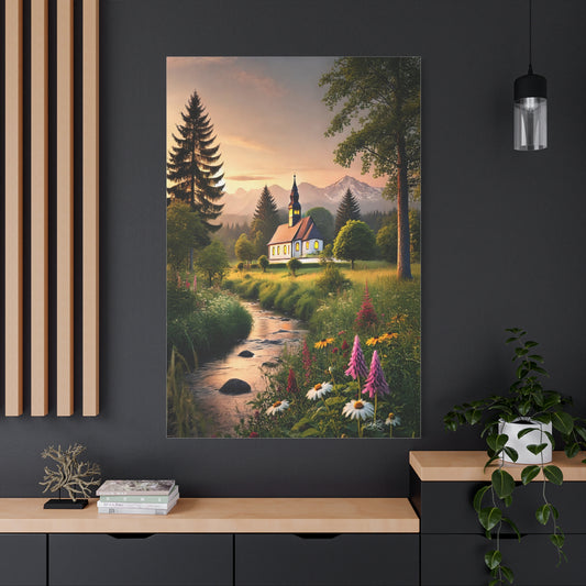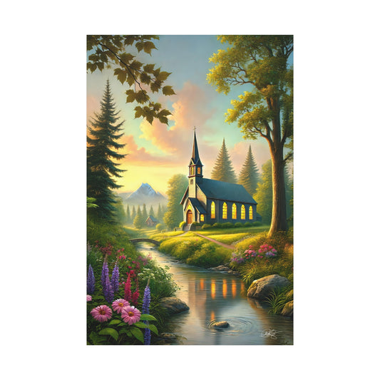 Serene Landscape Canvas Print - Peaceful Church Scene | Chapel of Tranquility