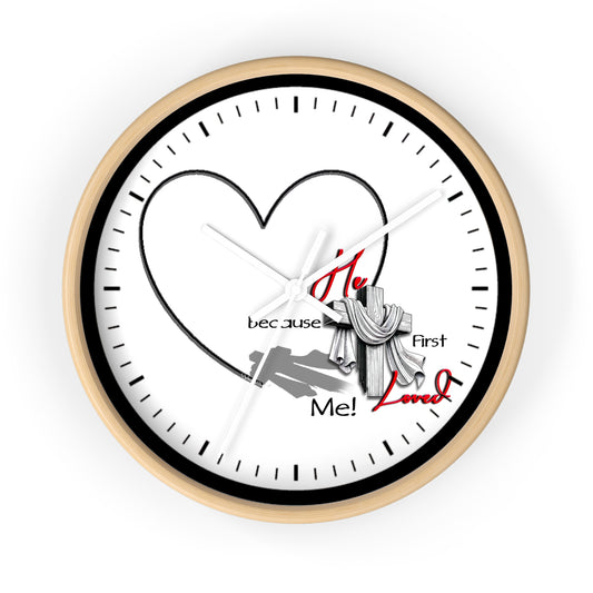 Inspirational Heart Wall Clock - 'He Loved Me First' Design